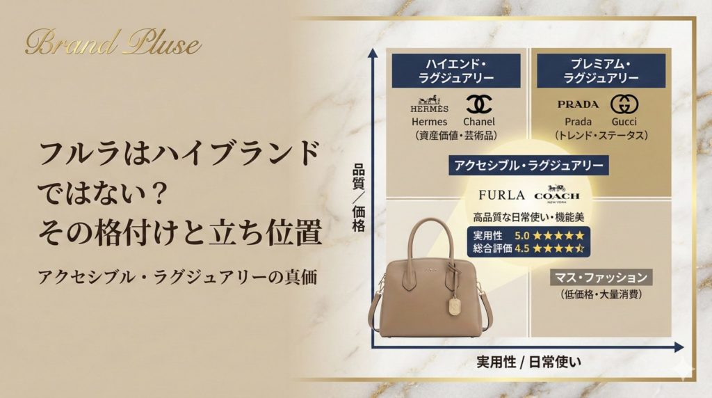 フルラはファッション業界の区分において**「アクセシブル・ラグジュアリー(手の届く高級品)」**というカテゴリーに位置しています。